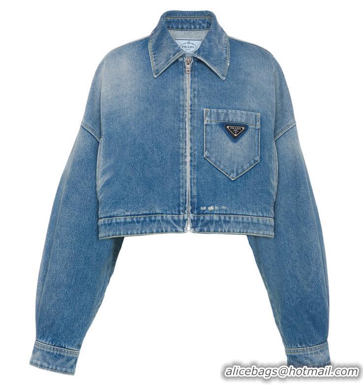 Fashion Discount Prada Cropped Organic Cotton Denim Jacket 16917 Blue