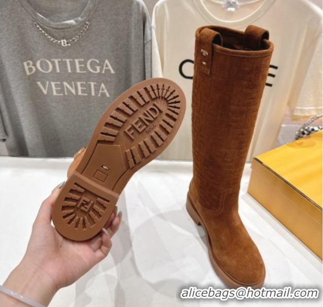 Fashion Fendi Filo Flat High Boots in FF Suede Light Brown 2025 FE103004 1030022