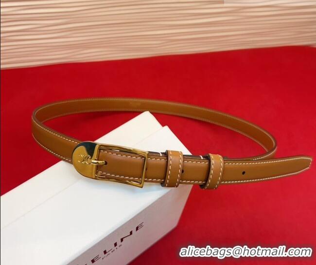 Fashion Luxury Celine Shiny Calfskin Leather Belt 1.8cm with Pin Buckle CE031603 Tan Brown/Gold 2026