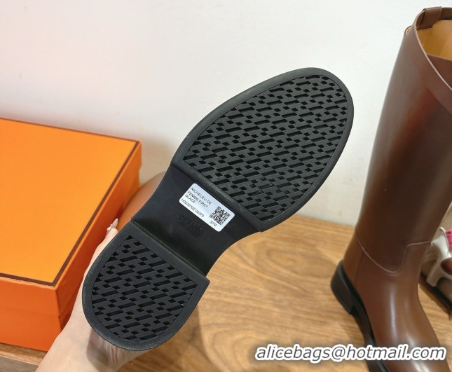 Fashion Luxury Hermes High Platform Boots in Calfskin Leather with Kelly Strap Dark Brown H102301 51023066