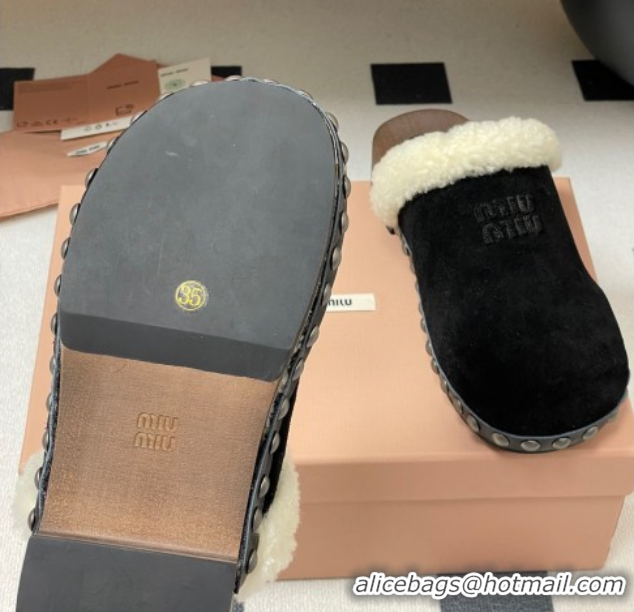 Grade Quality Miu Miu Suede and Wool Clogs Mules 2025 MIU082609 0826055