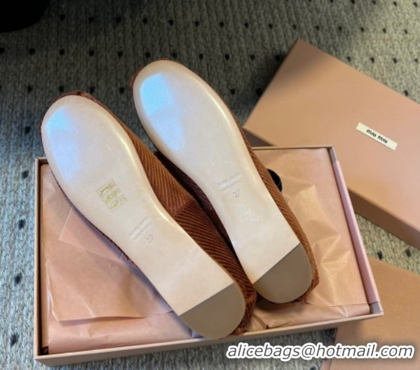 Stylish Miu Miu Corduroy Ballerinas Flat with Bow and Elastic Band 5F794D Brown 2025