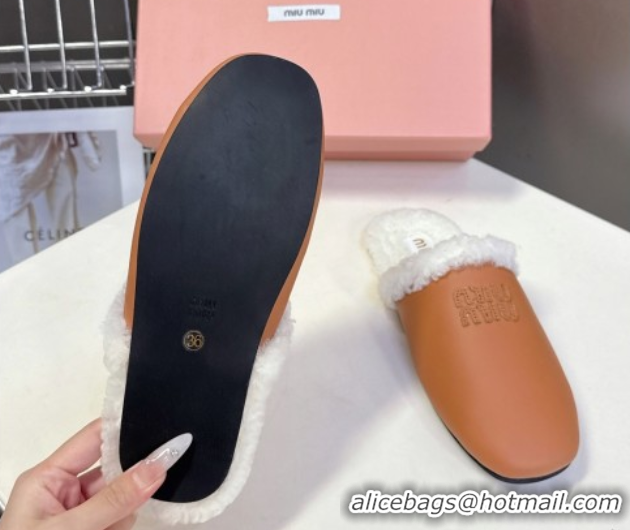 > Shoes Plaza > Miu Miu Shoes > Classic Miu Miu Leather and Wool Flat Mules Brown 2025 MM102502 1025057 2025