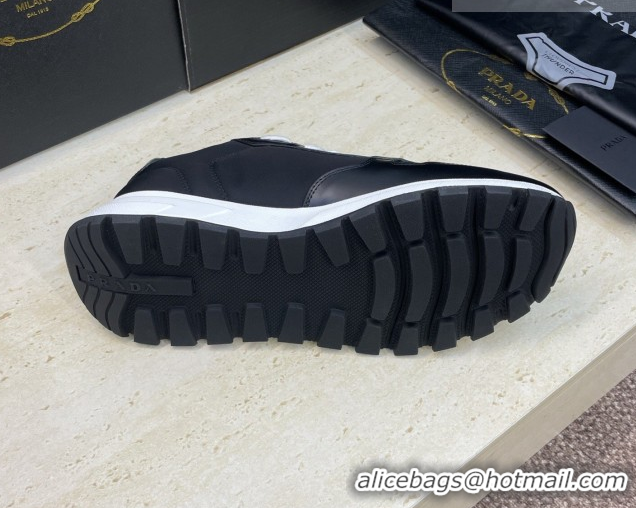 Fashion Prada Men's Prax 01 nylon and leather sneakers Black/White 1E804M 0228043