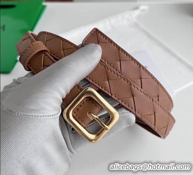 Promotional Bottega Veneta Intrecciato Leather Belt 2cm with Pin Buckle BV26010404 Travetine/Gold 2025