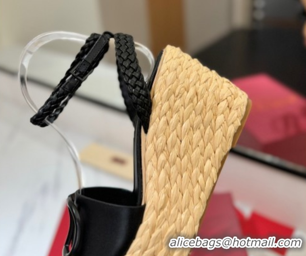 Fashion Valentino VLogo Calfskin Leather Wedge Sandals 9cm Black 2025 VA082113 0821133