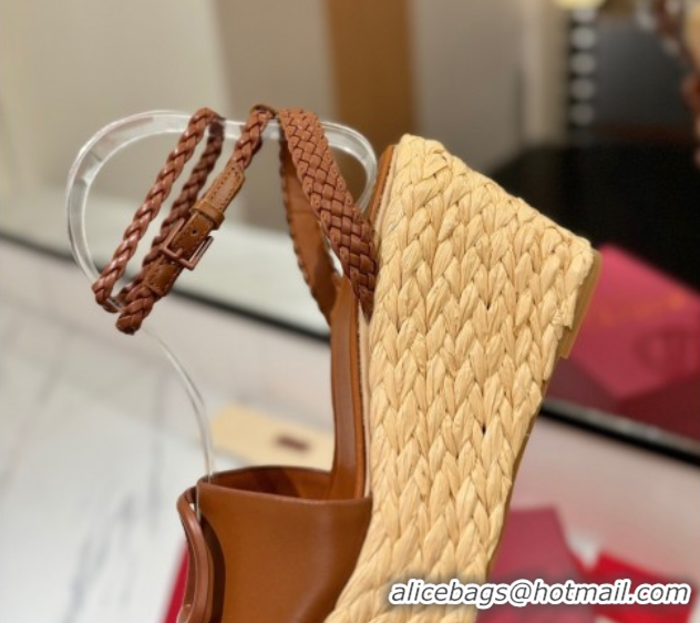 Best Price Valentino VLogo Calfskin Leather Wedge Sandals 9cm Brown 2025 VA082113 0821134