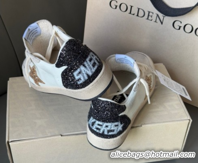 Feminine Golden Goose Women’s Ball Star LTD in white nappa leather and grey suede with glitter star and black heel tab 0902091