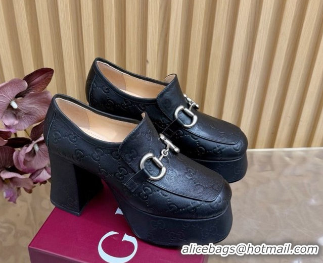 Classic Hot Gucci GG Leather Platform Pumps 9cm with Horsebit GG121804 Black 2026