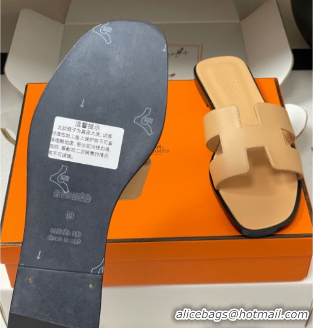 Unique Style Hermes Oran Classic Flat Slides Sandal in Smooth Calfskin Beige Yellow 2025 H081803