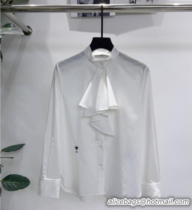 Free Shipping Discount Prada Ruffle Shirt PR110670 White 2025