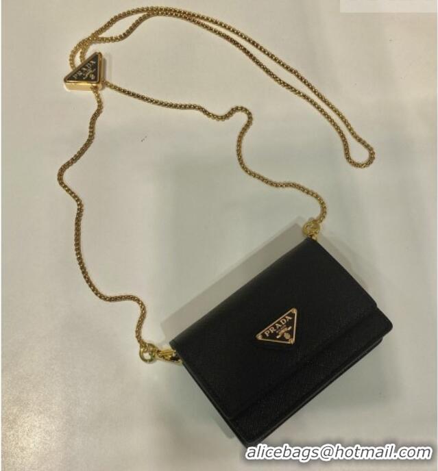 Free Shipping Grade Prada Saffiano Leather Card Holder with Shoulder Strap 1MR024 Black 2026