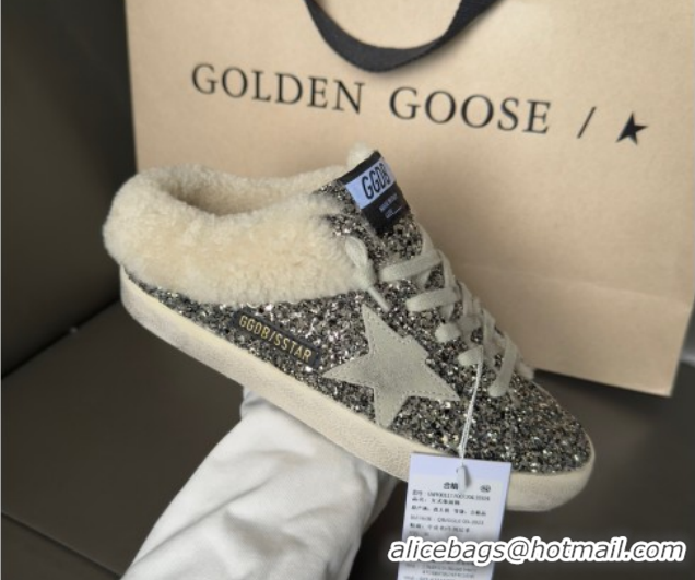 Most Popular Golden Goose Women's Super-Star Sabots Sneaker in Silver Glitter and Wool GGDB103119 1031079