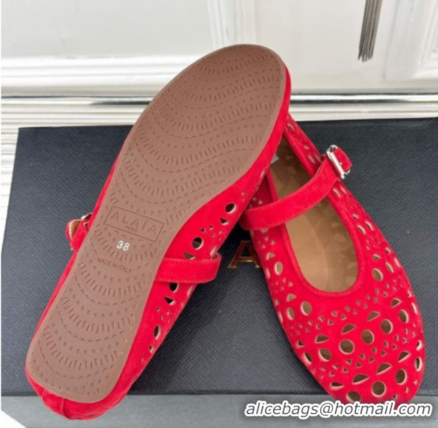 Good Looking Alaia Ballet Flat in Openwork Suede Red 0224045