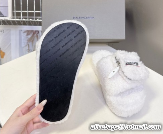 Good Looking Balenciaga Shearling-Like Platform Slides Sandal White 0827017