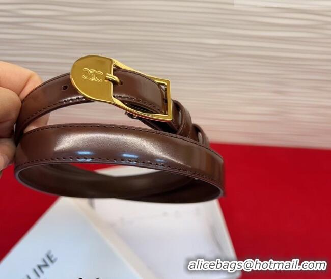 Low Cost Celine Shiny Calfskin Leather Belt 1.8cm with Pin Buckle CE031603 Chocolate/Gold 2026