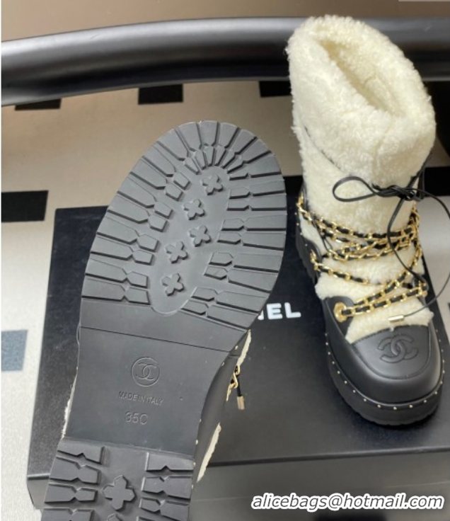 Best Product Chanel Calfskin Leather and Wool Snow Ankle Boots with Chain Black/White 2025 CH110403 1104065