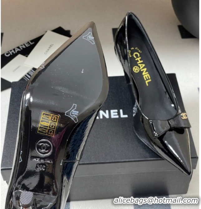 Good Looking Chanel Crumpled Patent Calfskin Pumps 7.5cm with Bow Black 2025 G46547