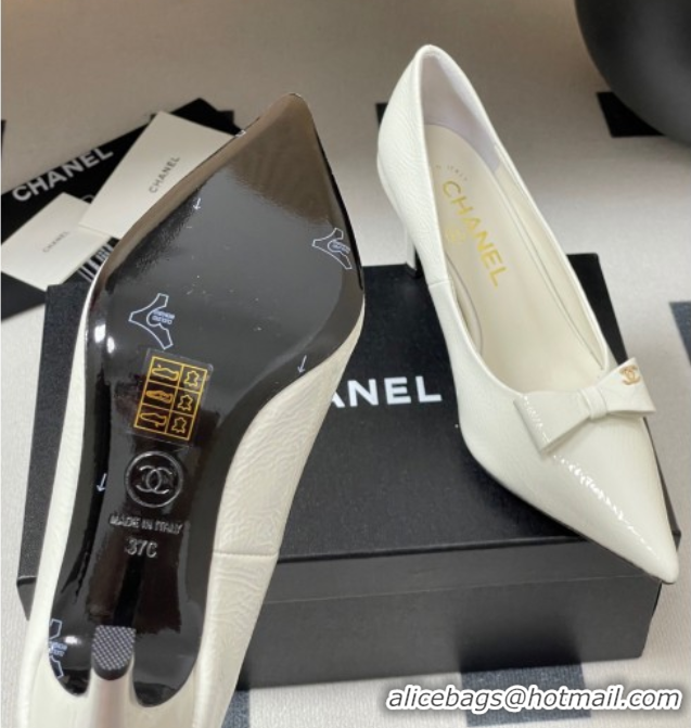 Best Product Chanel Crumpled Patent Calfskin Pumps 7.5cm with Bow White G46547