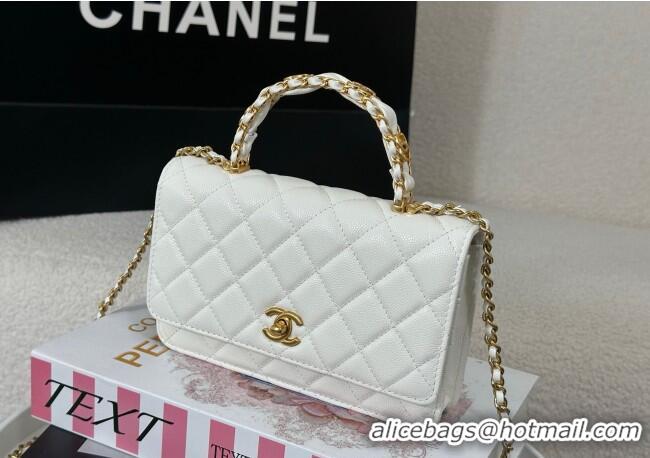 Good Looking Chanel Grained Shiny Calfskin Wallet on Chain with Top Handle WOC AP4785 White 2025