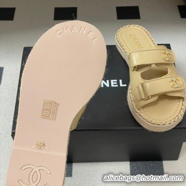 Good Quality Chanel Lambskin Leather Flat Slides Sandal with Strass, Chain and Strap CH030610 Beige 2026