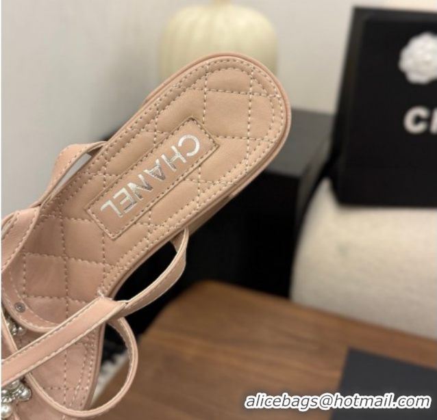 Stylish Chanel Lambskin Leather Heel Strap Sandals 9cm with Bloom G46964 Pink 2026