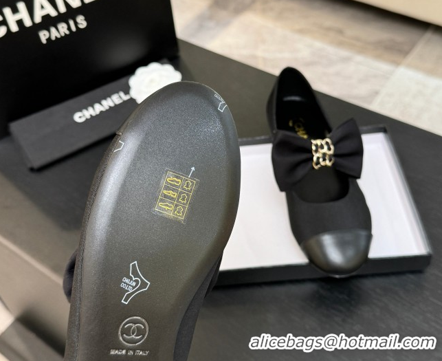 1:1 aaaaa Chanel Grosgrain & Calfskin Leather Mary Janes Ballet Flats with Bow Black 2025 CH110303 1103073
