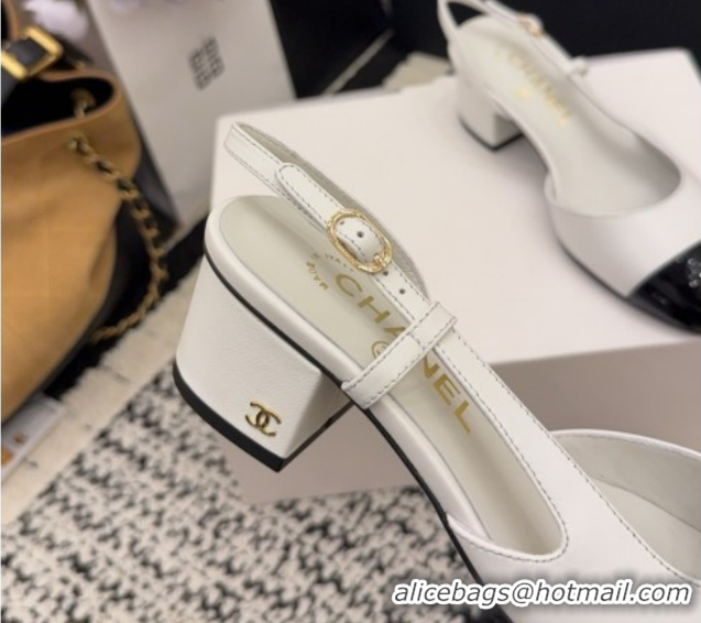 Top Design Chanel Lambskin & Patent Leather Slingbacks Pump 4cm G46943 White 2026