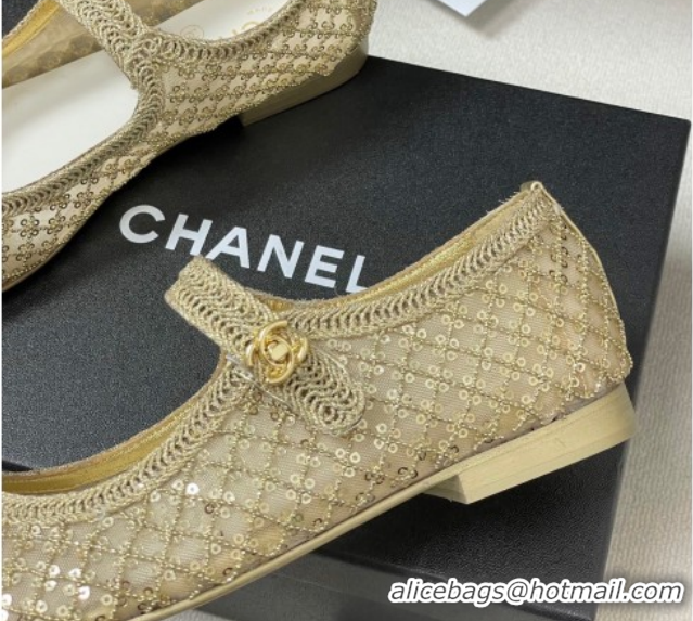 Good Looking Chanel Mesh & Sequins Mary Janes Flat CH122302 Gold 2026