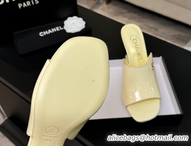 Sumptuous Chanel Patent Calfskin Leather Heel Slides Sandal 9cm G46904 Yellow 2026
