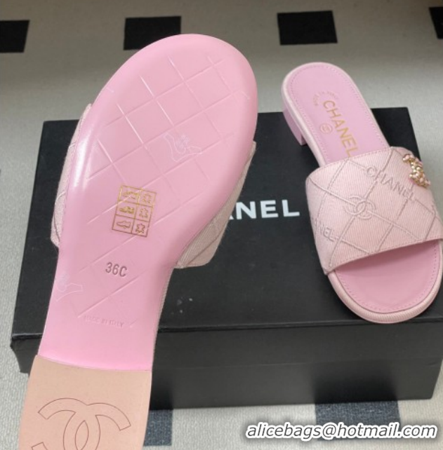 Good Looking Chanel Quilted Cotton Flat Slides Sandal CH030902 Pink 2026