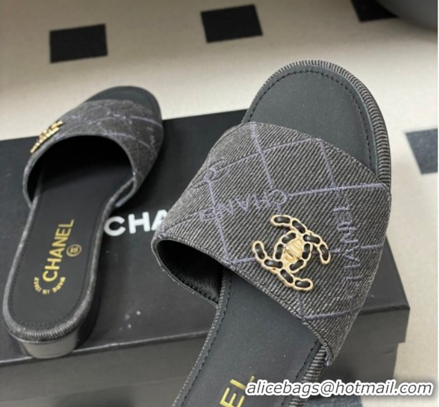 Best Grade Chanel Quilted Cotton Flat Slides Sandal CH030902 Black 2026