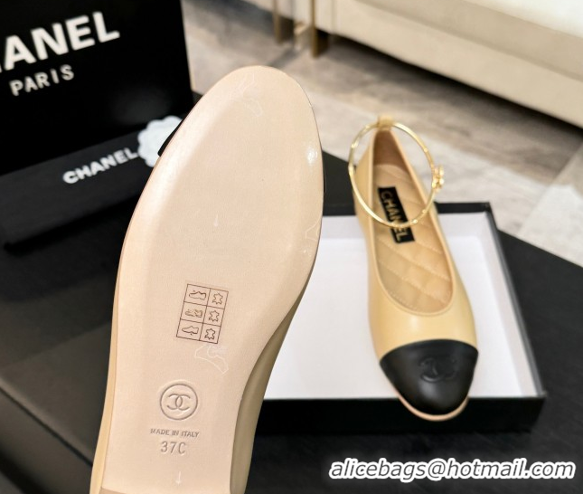 Popular Style Chanel Lambskin Leather Ballet Flats with Logo Loop G46932 Beige