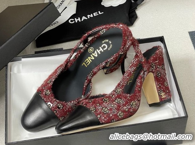 Good Product Chanel Camellia Tweed & Lambskin Leather Slingbacks Pump 9cm G45509 Burgundy/Black 2026