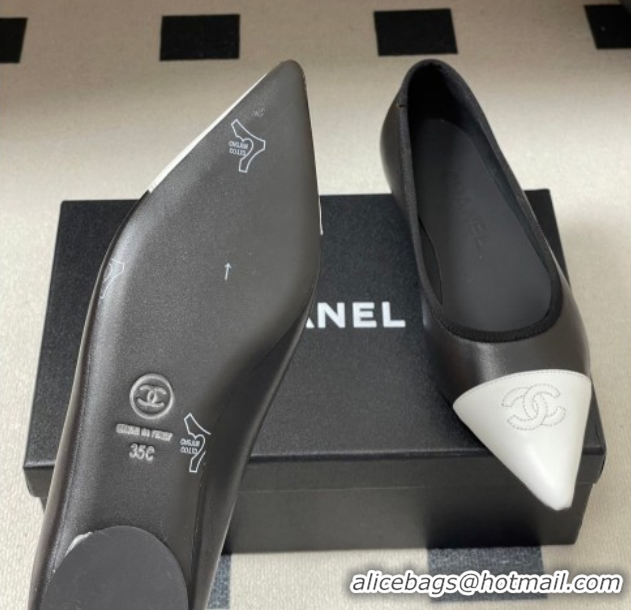Best Product Chanel Lambskin Leather Pointed Ballet Flats G47081 Black/White2 2026