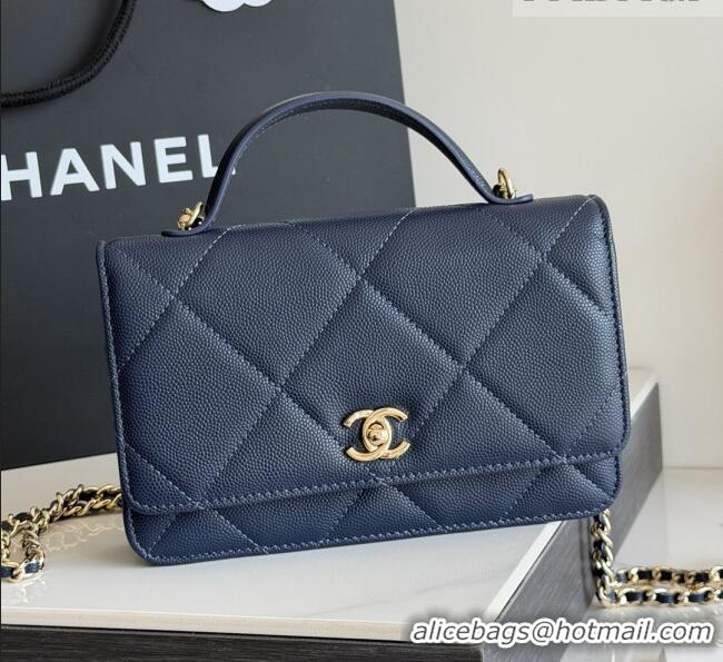 Your Position: Home > Chanel Handbag > Chanel 2026 Bags > New Fashion Chanel Wallet On Chain with Top Handle Grained Shiny Calfskin AP4931 Navy Blue 2026