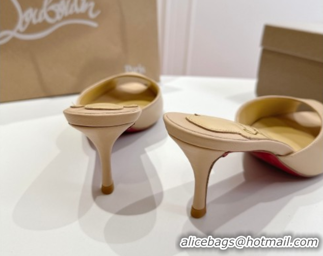 Good Quality Christian Louboutin Me Dolly Heel Slides Sandal 5.5cm in Calf Leather Beige 1030146