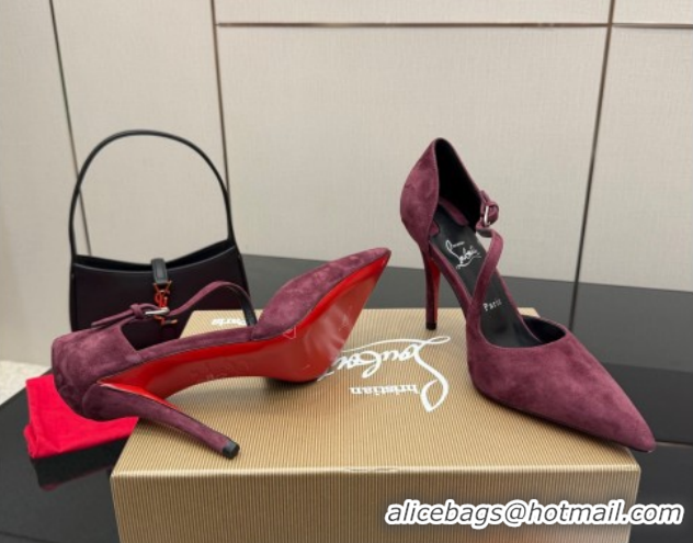 Best Grade Christian Louboutin Miss Ziggyta Heel Pumps 10cm with Strap in Suede 1209125 Burgundy 2026