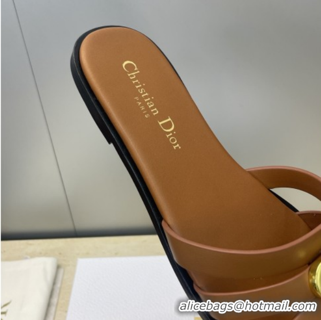 Top Grade Dior 30M Flat Slides Sandal in Calfskin Leather with CD Pearl Brown 1217026