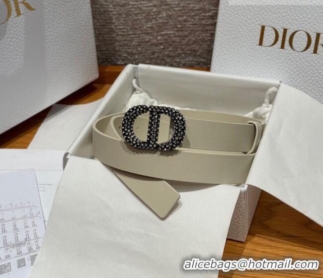 Good Looking Dior Calfskin Leather Belt 2.5cm with Strass CD Buckle 1230 White/Black 2025