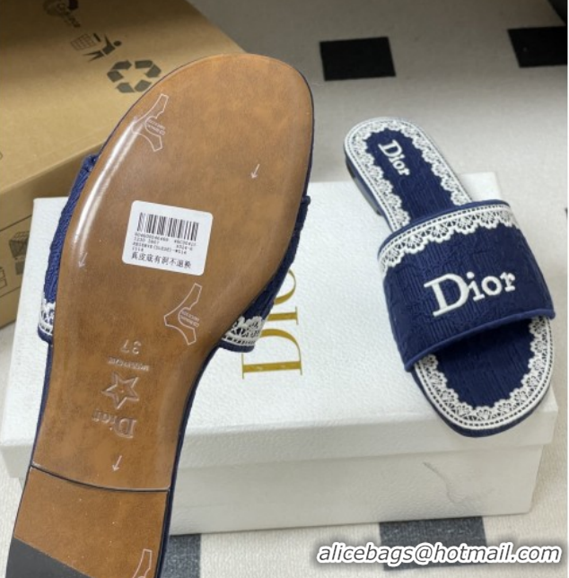 Good Looking Dior Dentelle Slide Sandals in Blue Dior Oblique Embroidered Cotton and White Lace 6012215 2026