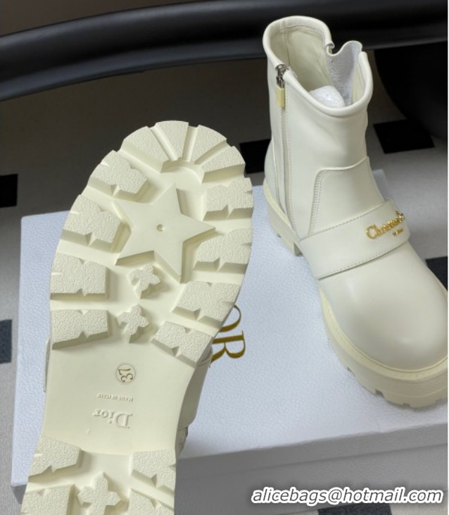 Best Product Dior DiorAlps D-Quest Ankle Boots in Calfskin Leather with Logo Buckle Strap White DR121609 1216125