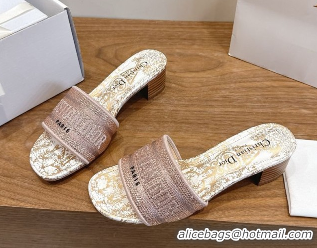 Cheap Price Dior Dway Heeled Slides Sandal 4.5cm in Cotton Embroidered with Strass Pink 0302111
