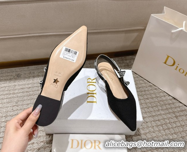 Low Cost Dior J'Adior Slingbacks Ballets Flat in Black Technical Fabric with Cannage Motif 1217055
