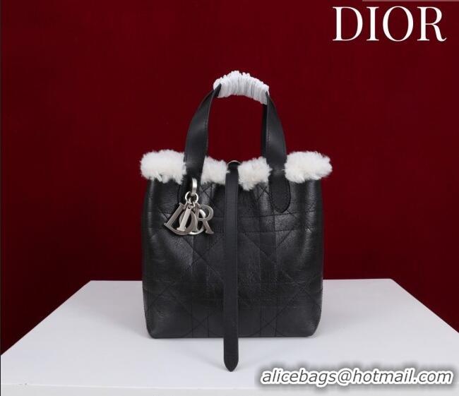 Promotional Dior DiorAlps Small Toujours Vertical Tote Bag in Macrocannage Crinkled Calfskin and Merino Wool 2043 Black/