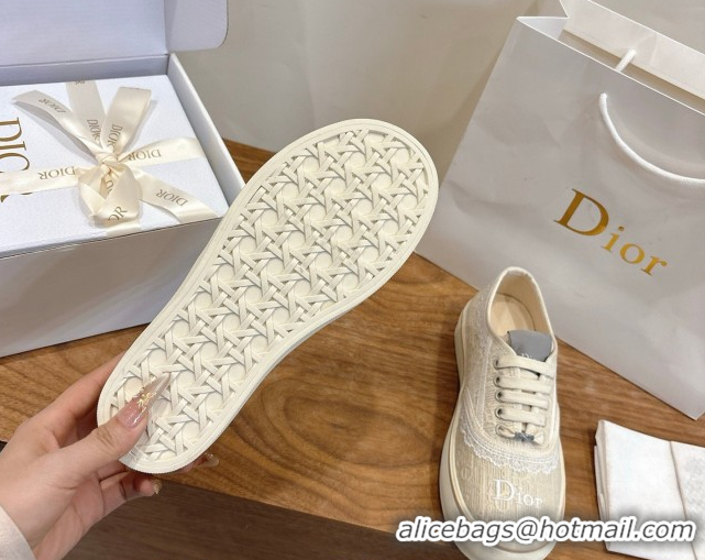 Good Looking Dior Saltwind Sneakers 3cm in Dior Oblique Embroidered Cotton and White Lace Beige 2026 0303038