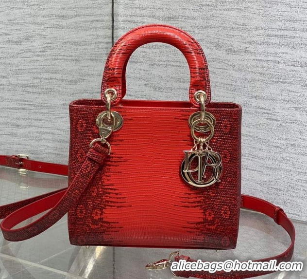 Low Cost Dior Small Lady Dior Bag in Lizard Embossed Leather DR012604 Red 2026