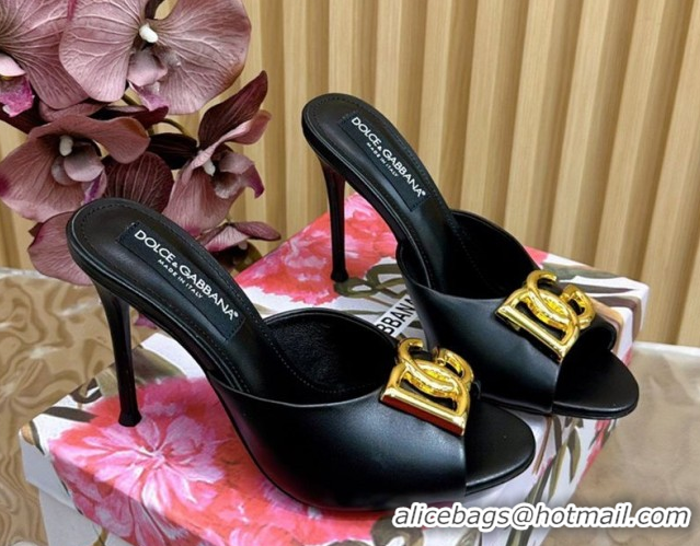 Good Looking Dolce & Gabbana Calfskin Leather Heel Slides Sandal 10cm with DG Logo DG121103 Black 2026