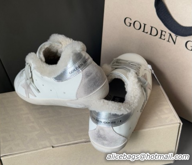 Popular Style Golden Goose Women's Super-Star Sneakers in White Leather and Wool GGDB103124 1031084