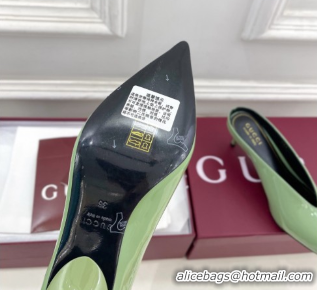 Stylish Gucci 97 Heeled Mules 5.5cm in Patent Leather Green 1021054